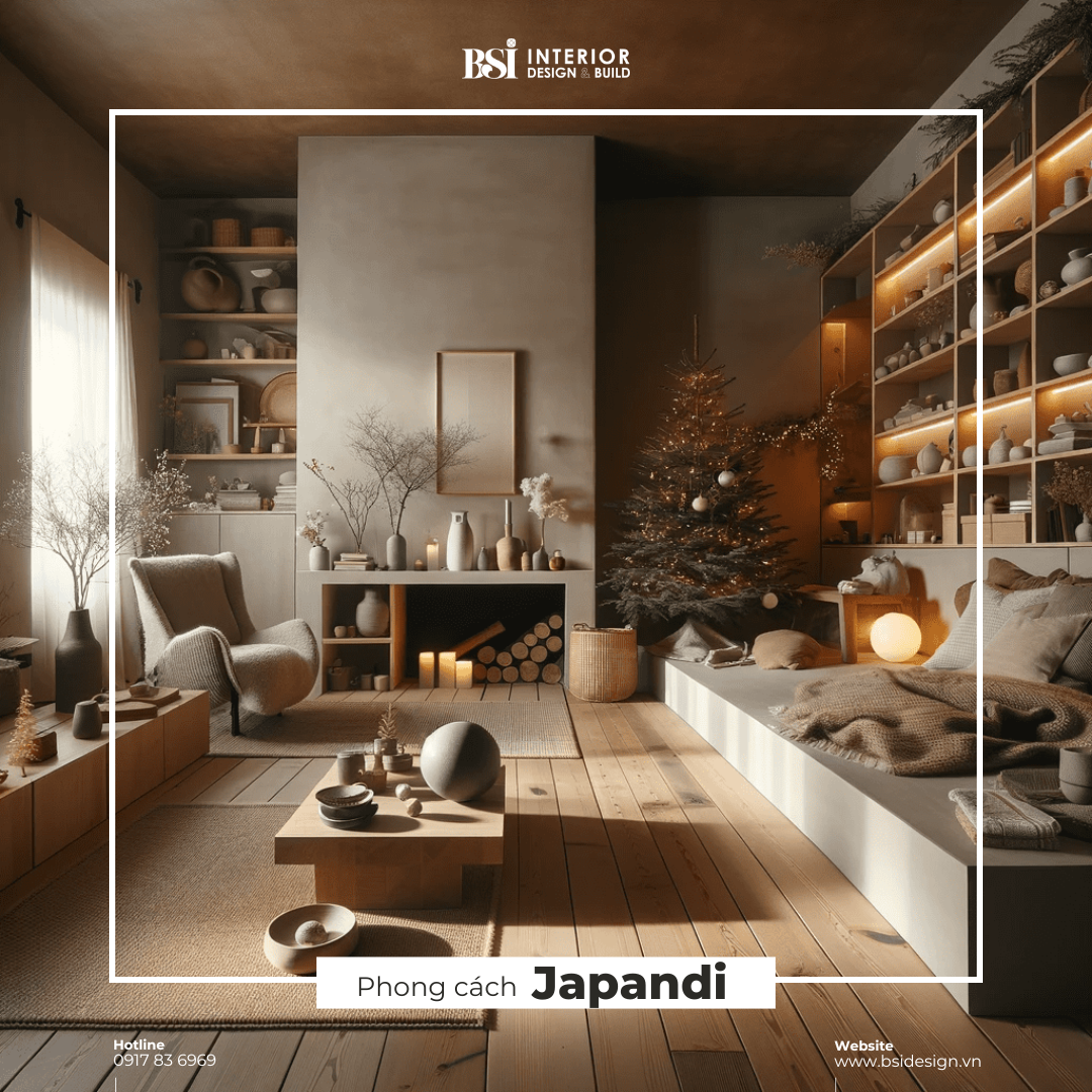 Trong phong cách Japandi, bảng màu Giáng sinh sẽ trầm lắng và mang tính chất đất. Những màu phấn nhạt, trung tính và đôi khi là màu đen hoặc xanh navy mang lại cảm giác bình tĩnh và thanh lịch giản dị. Những sắc thái này phản ánh thế giới tự nhiên vào mùa đông, gợi lên cảm giác về một khung cảnh tuyết phủ yên bình.